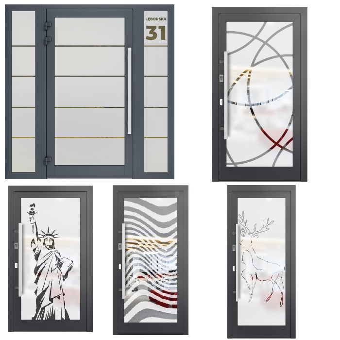 Porte con disegniPorte ingresso con disegni a richiesta con vetro sabbiato